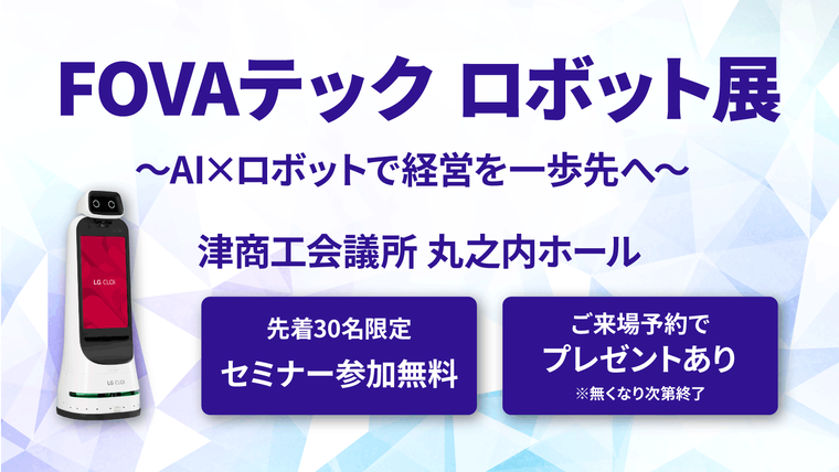 事前予約制展示会&セミナー FOVAテック ロボット展 ~AI×ロボットで、経営を一歩先へ~ 2025年10月29日(水) -